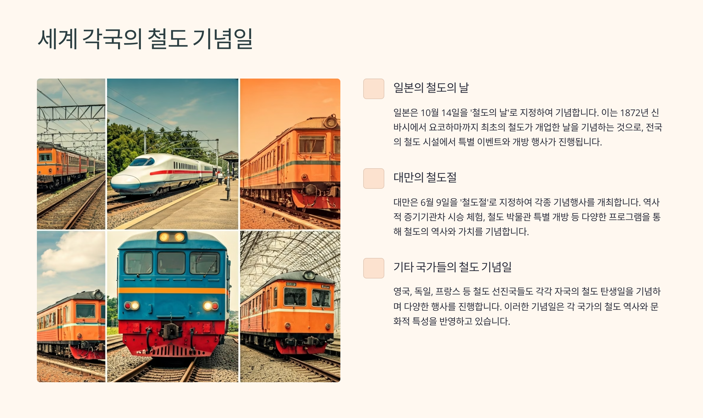🌐 주요 국가 철도의 날 비교