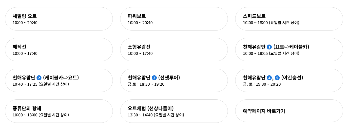 현장에서도 일부 잔여 좌석이나 체험에 대해 당일 선착순 접수가 가능해요. 다만 요트나 유람선과 같이 준비가 필요한 프로그램은 사전 예약자 우선이기 때문에 계획적으로 움직이는 게 좋아요. 예약 시간 10분 전에는 꼭 체험 장소에 도착해야 한답니다.