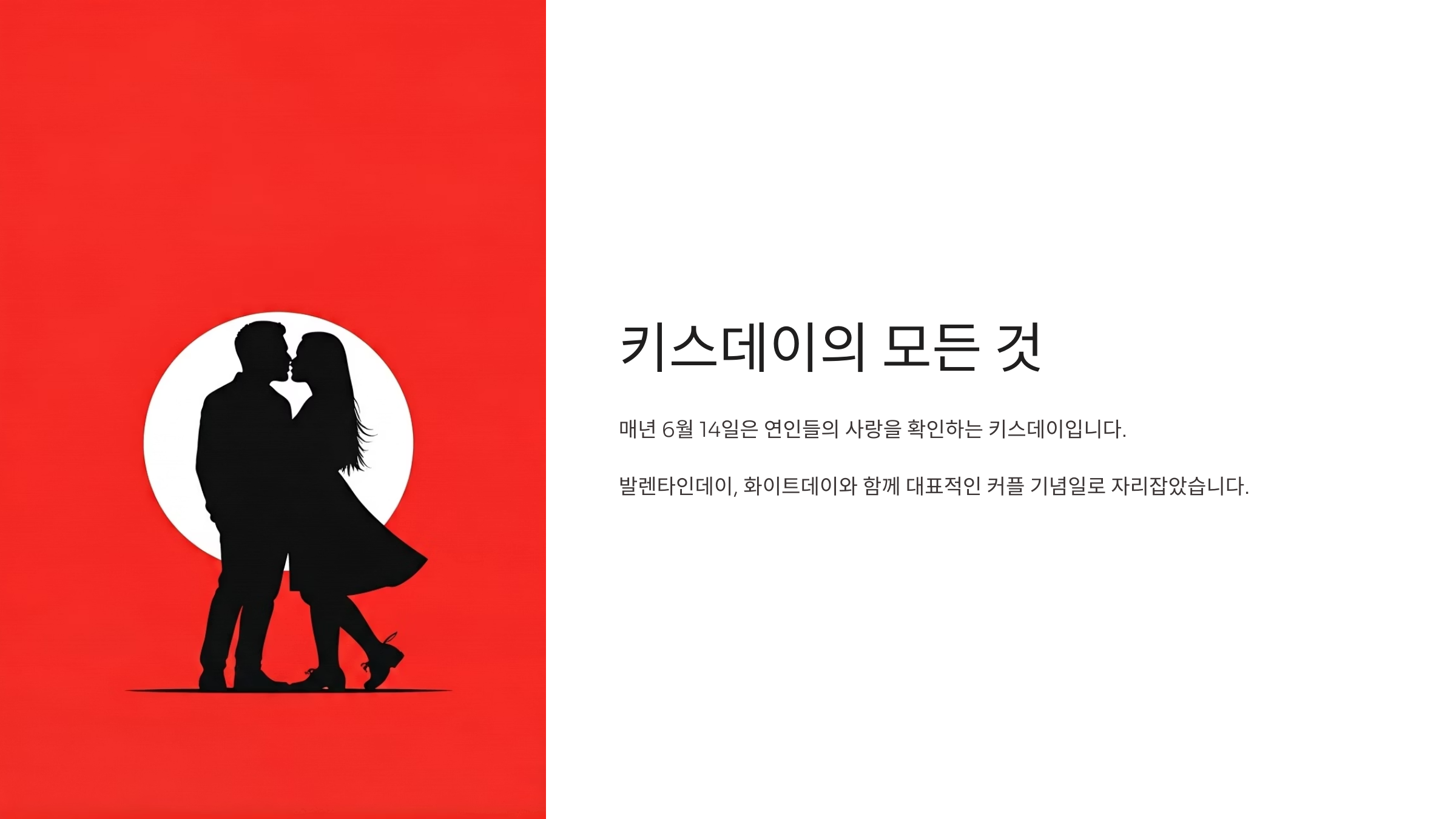 하지만 키스데이를 그저 연인의 날이라고만 보지 말고, 감정을 공유하는 하나의 방법으로 생각하면 더 의미 있게 즐길 수 있지 않을까요? 💞