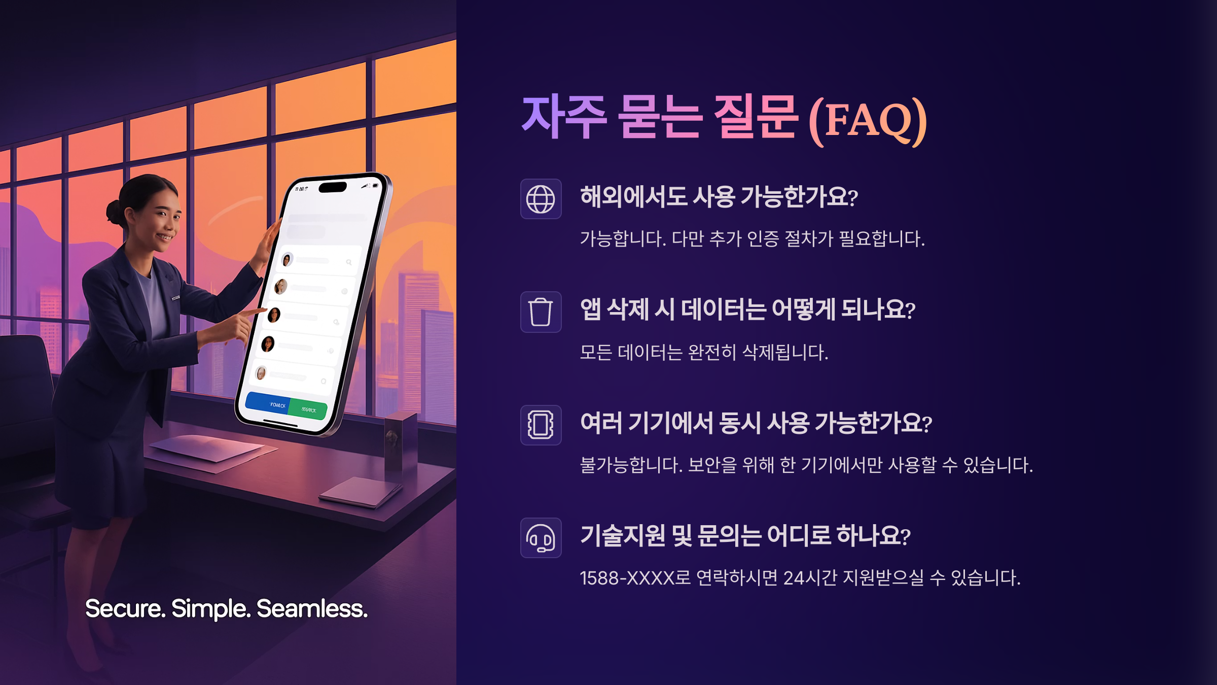 본인 인증 | 앱 내 생체 인식 또는 PIN으로 인증 |